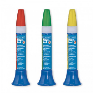 Weicon Threadlocking Varnish прочен против воды, бензина, дизельного топлива, минерального масла, парафинового масла и разбавленных кислот и щелочей. Необходим для блокировки всех видов винтовых соединений, защиты от манипуляций и несанкционированного ослабления винтов и соединений, а также для визуального контроля подключенных отрегулированных деталей.
